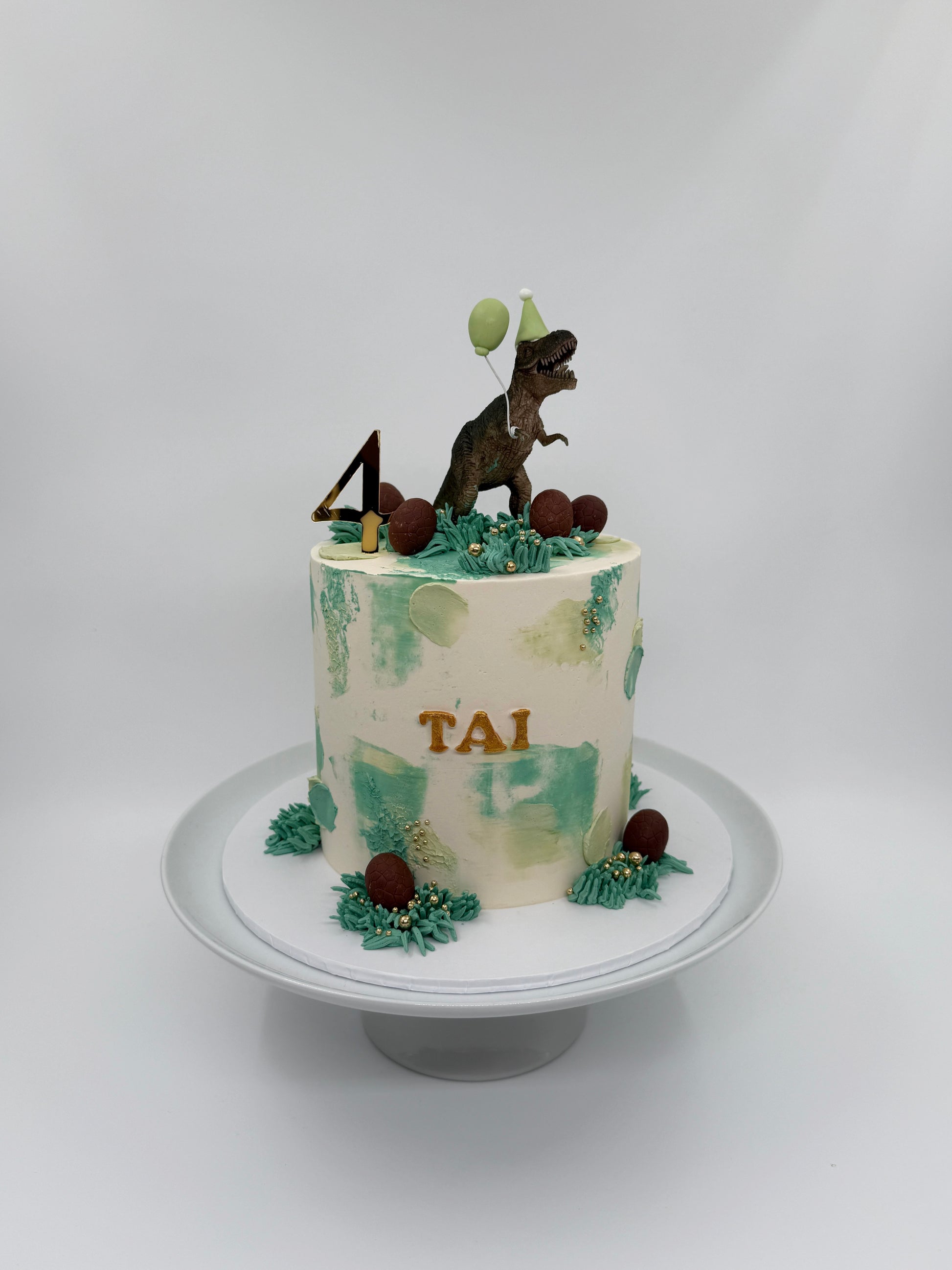Your choice of cake flavour and filling, iced in a chocolate American buttercream, topped with a dinosaur, chocolate eggs (subject to availability - we will replace these with something else that will be suitable, if we need to) and sprinkles.