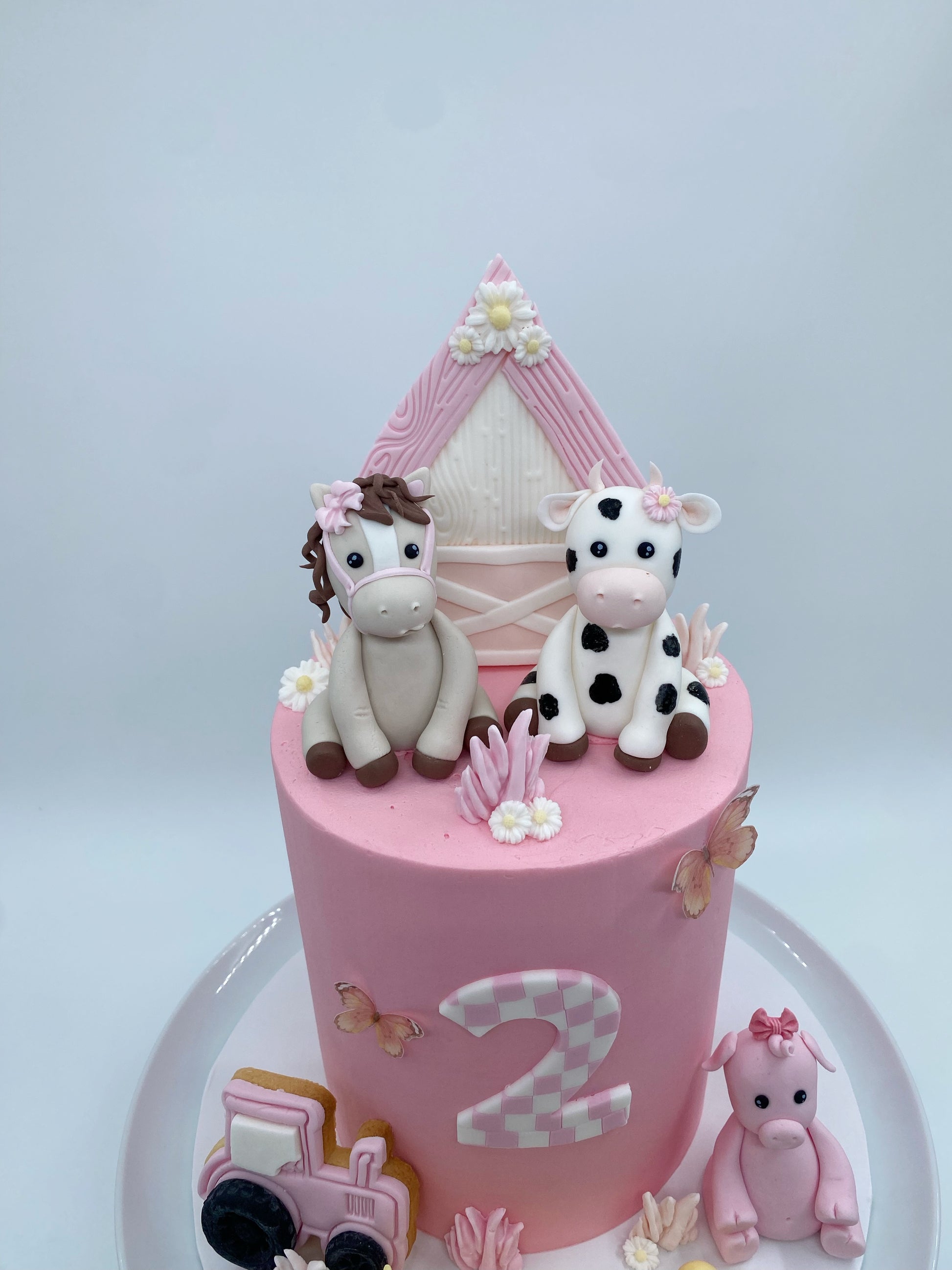 Your choice of cake and filling flavour iced in a vanilla American buttercream, topped with hand made fondant animals and details.